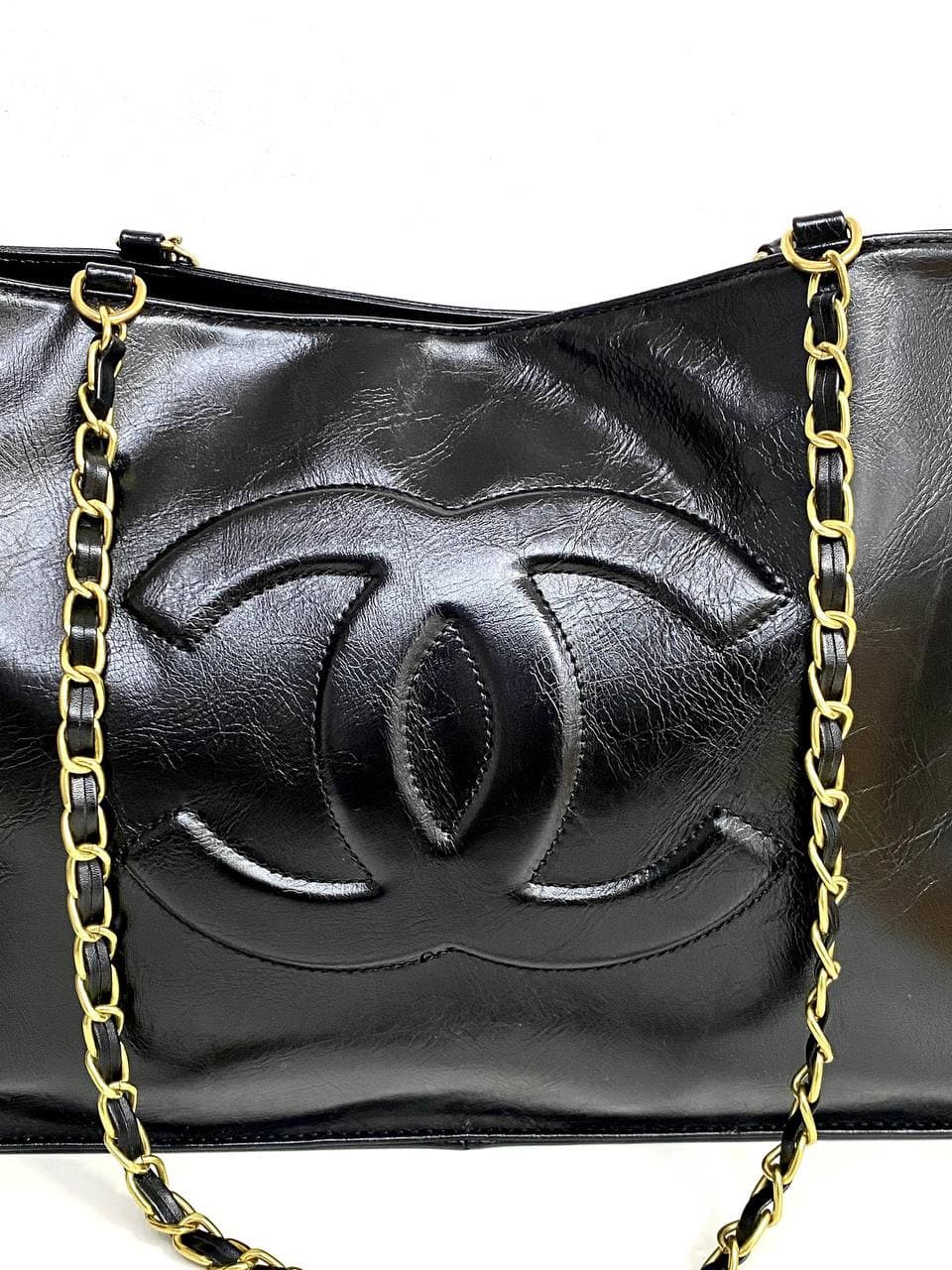 Shopping BagShiny Aged Calfskin & Gold-Tone MetalBlackDimensions : 26 × 37 cm Material : Leather