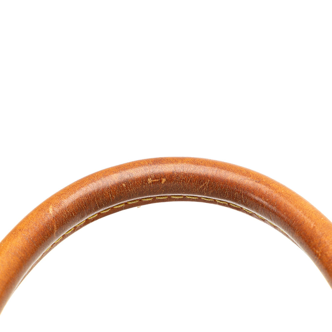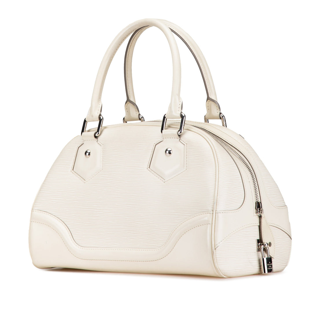 Product Details: White Louis Vuitton Epi Bowling Montaigne PM Handbag. The Bowling Montaigne PM features...