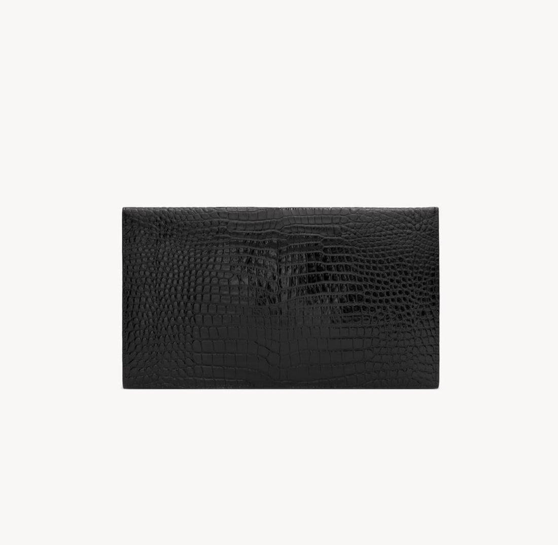 YSL UPTOWN POUCH IN CROCODILE-EMBOSSED SHINY LEATHERBLACK SMALL ENVELOPE POUCH WITH A FLAP DECORATED WITH...