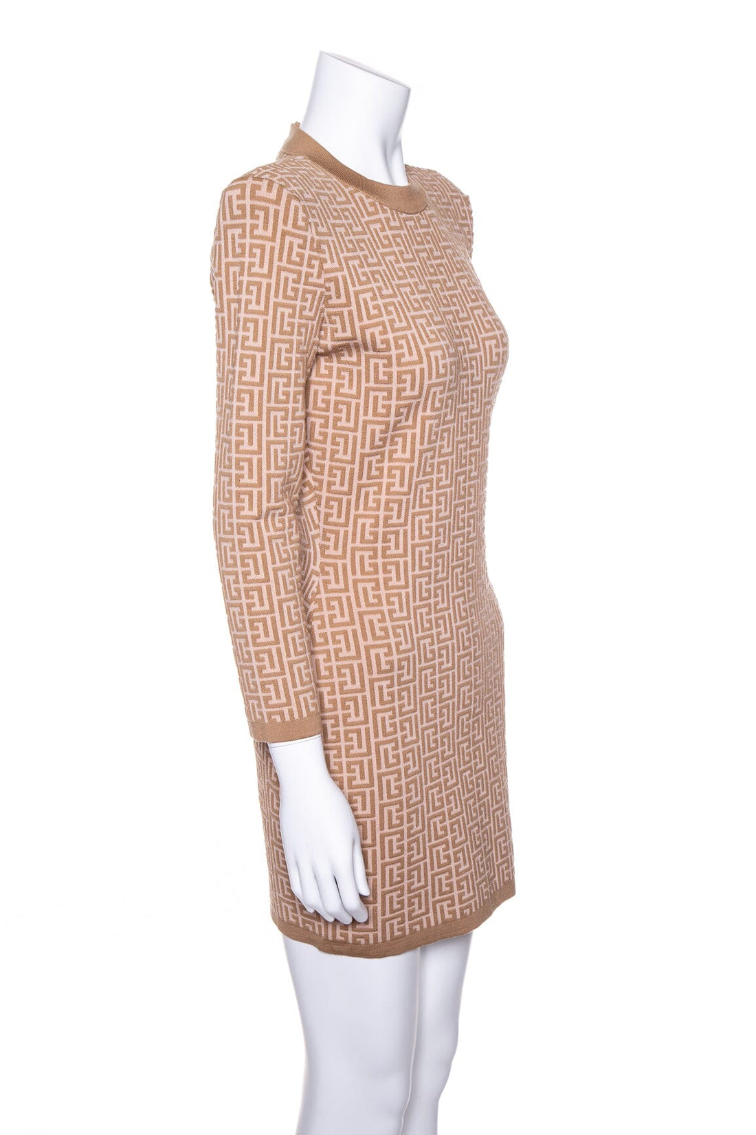 Balmain Beige/Camel Printed Knit Long Sleeve Fitted Dress. This item is in very good condition.Size:...