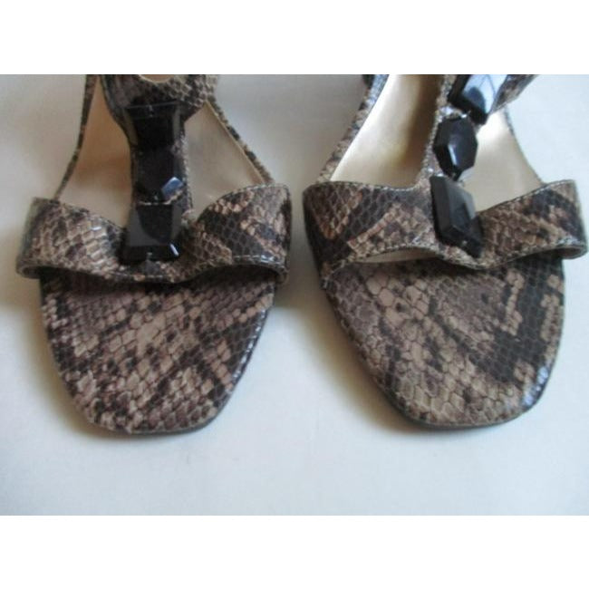Anne Klein Natural Taupe Off White Patent Lizard Print Leather Upper Sandals Size Us