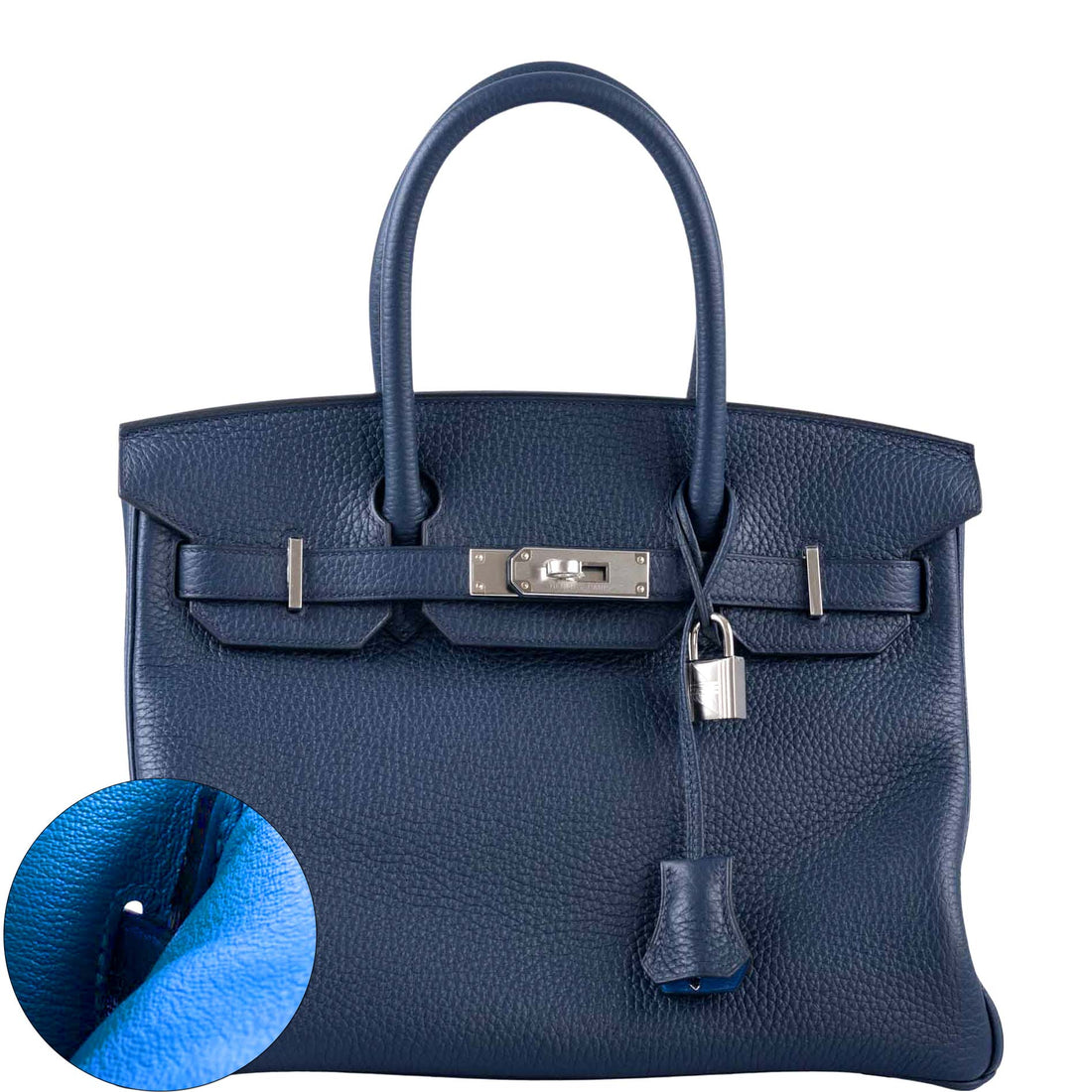 Hermès Verso Birkin 30 Blue de Prusse and Mykonos Clemence Leather Palladium Hardware