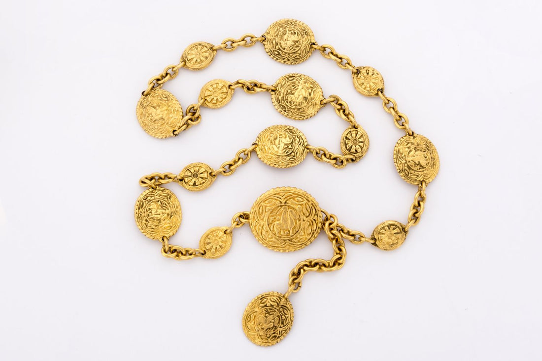 Brand: Chanel Model: Vintage Waist Chain Belt 15 Charms Color: Gold Color Size: Material: Metal Chanel Vintage Waist Chain Belt...