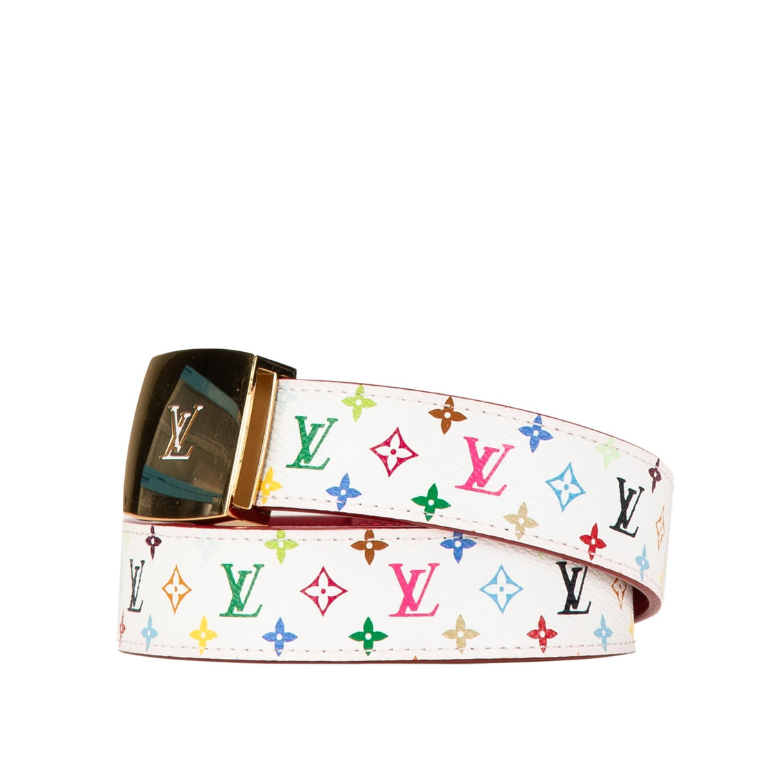 White Louis Vuitton Monogram Murakami LV Cut Reversible Belt