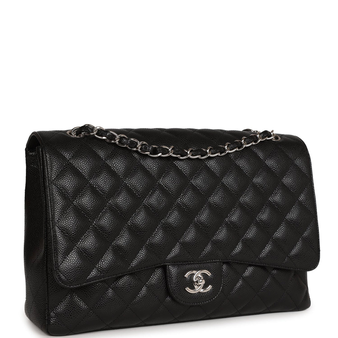 Chanel Maxi Classic Single Flap Bag Black Caviar Silver Hardware