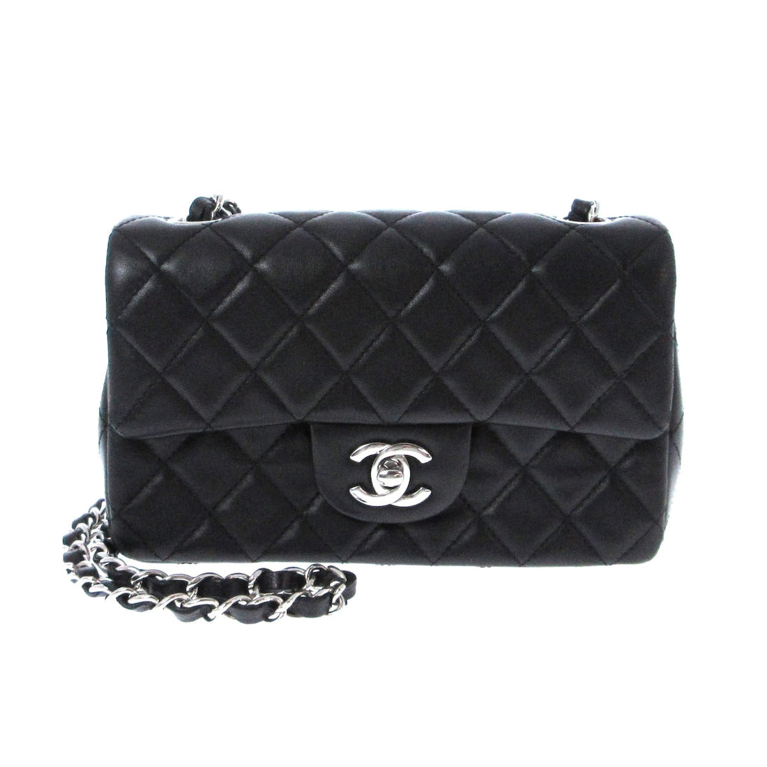 Chanel Mini Classic Rectangular Flap Bag Black Lambskin Silver Hardware