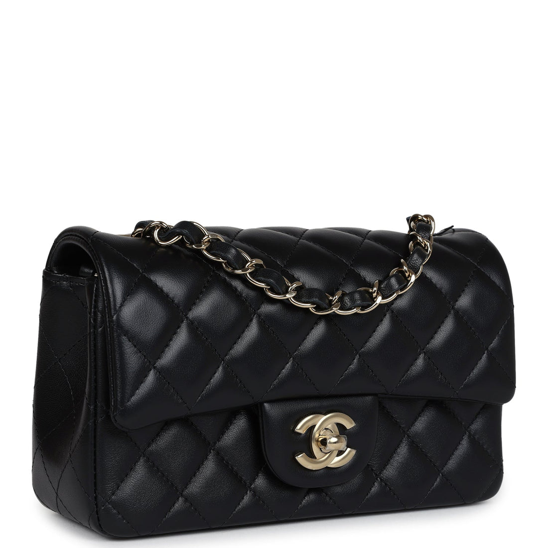 Chanel Mini Classic Rectangular Flap Bag Black Lambskin Light Gold Hardware