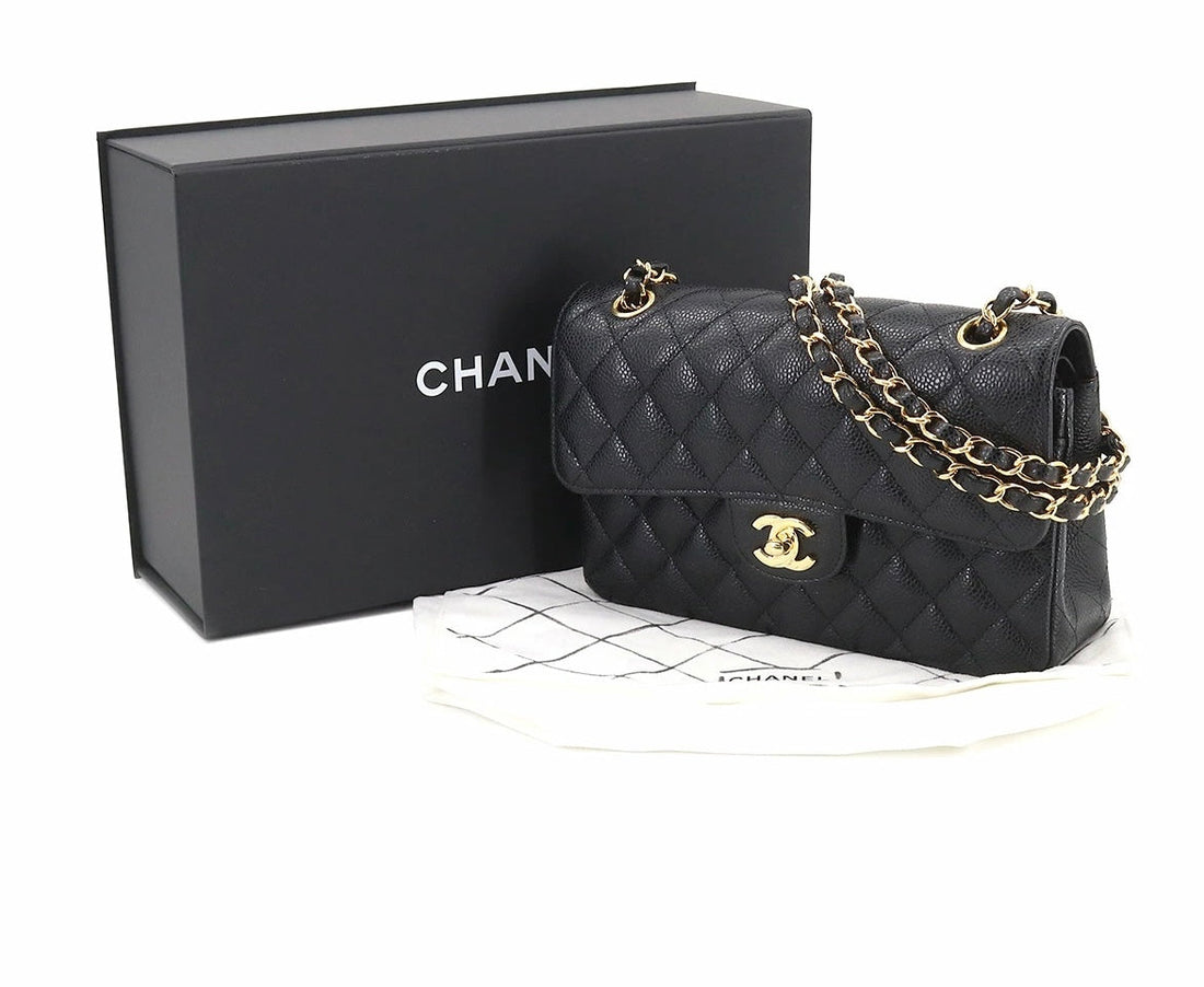 Chanel Model: Timeless Double Flap Small Bag Color: black Composition: caviar leather Hardware: golden Measurements: 15cm x...