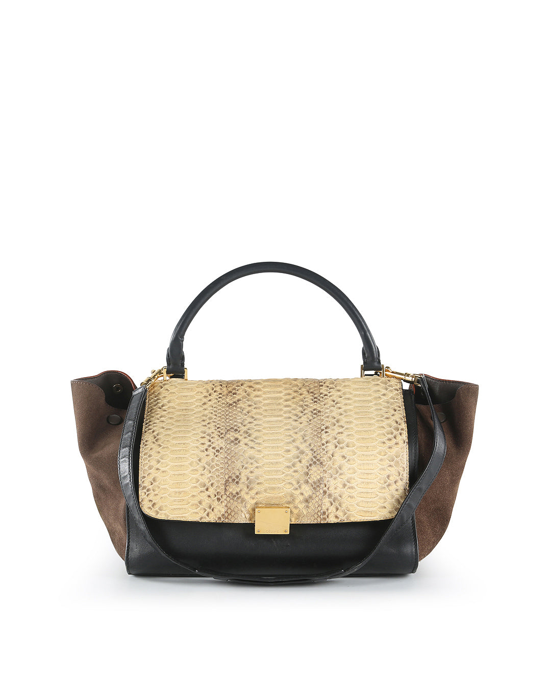 Celine Black & Brown Python Leather & Suede MediumTrapeze Bag
