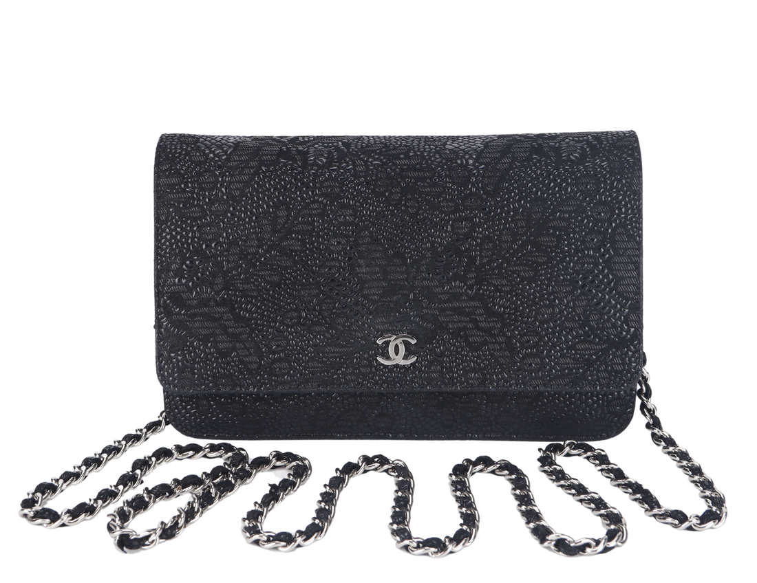 CHANEL W.O.C FLOWER LACE (1895xxxx) BLACK EMBOSSED GOATSKIN SILVER HARDWARE NO DUST COVER