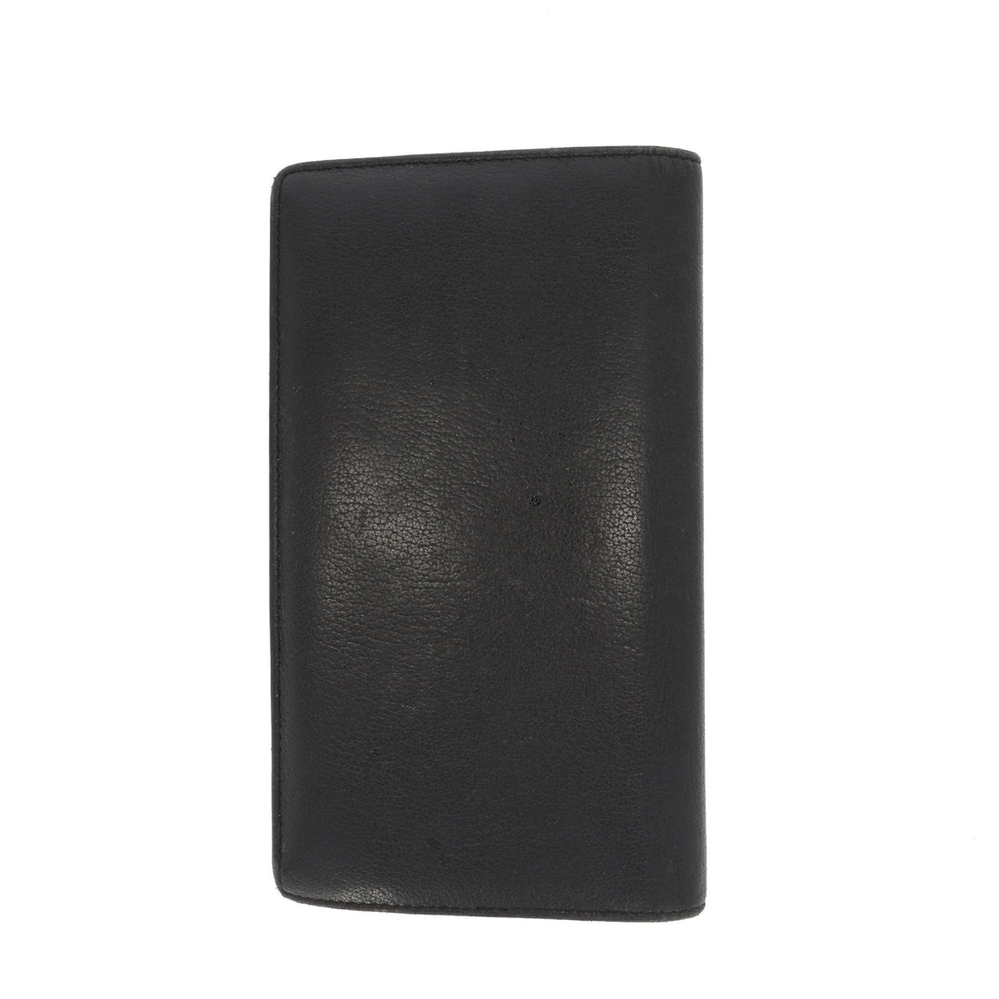 This Wallet On Chain is in black lambskin with black lacquered and brushed gold tone metal...