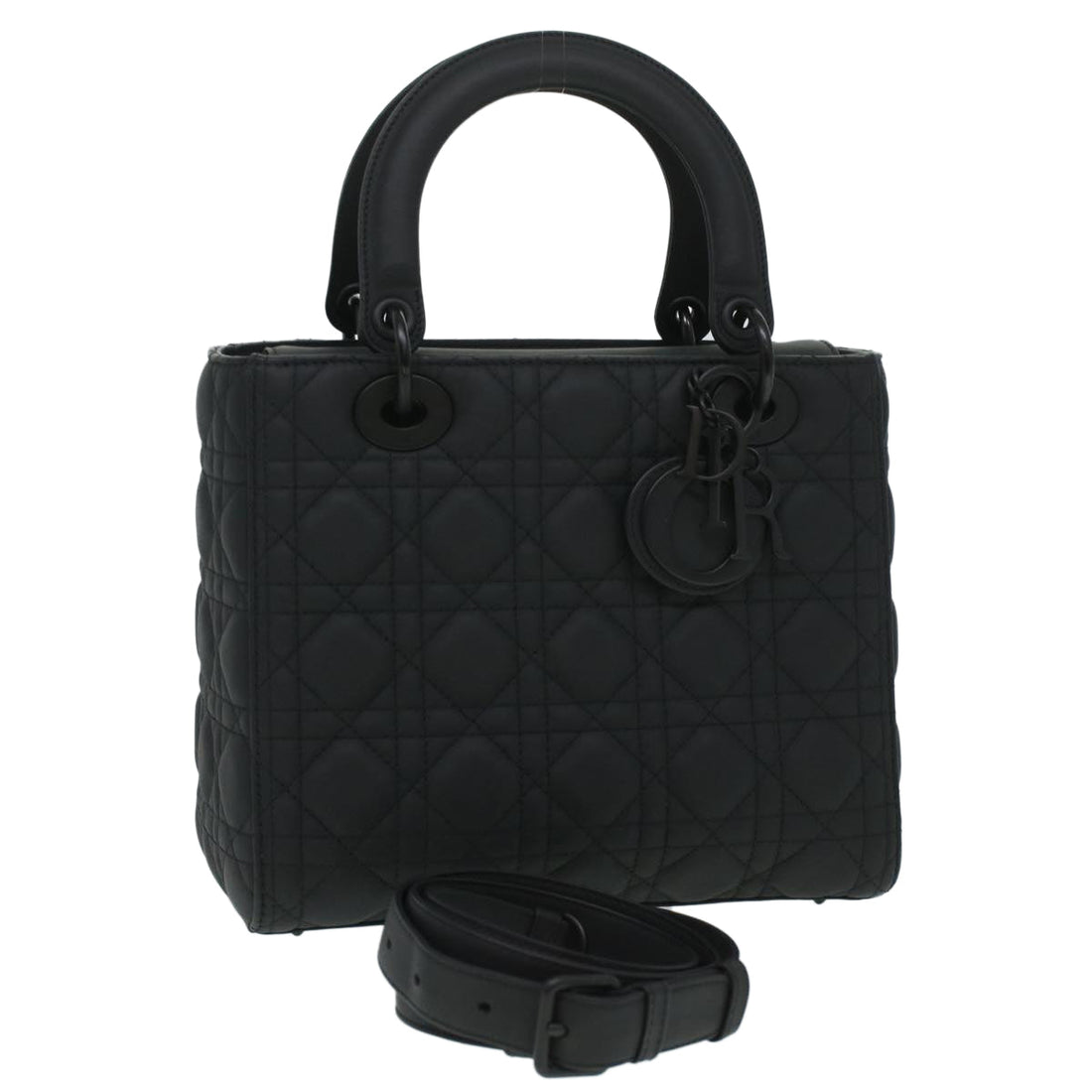 CHRISTIAN DIOR Canage Lady Dior Hand Bag Calfskin Black M0566SLOI Auth 36776ABRAND : Christian Dior...