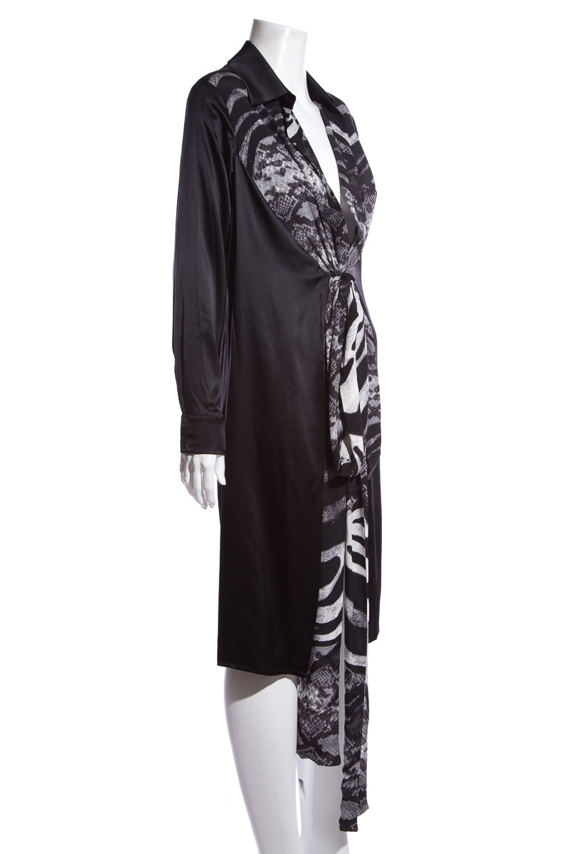 Daniela Corte Black Silk & Snakeskin Button Front L/S Tunic. This item is in good...