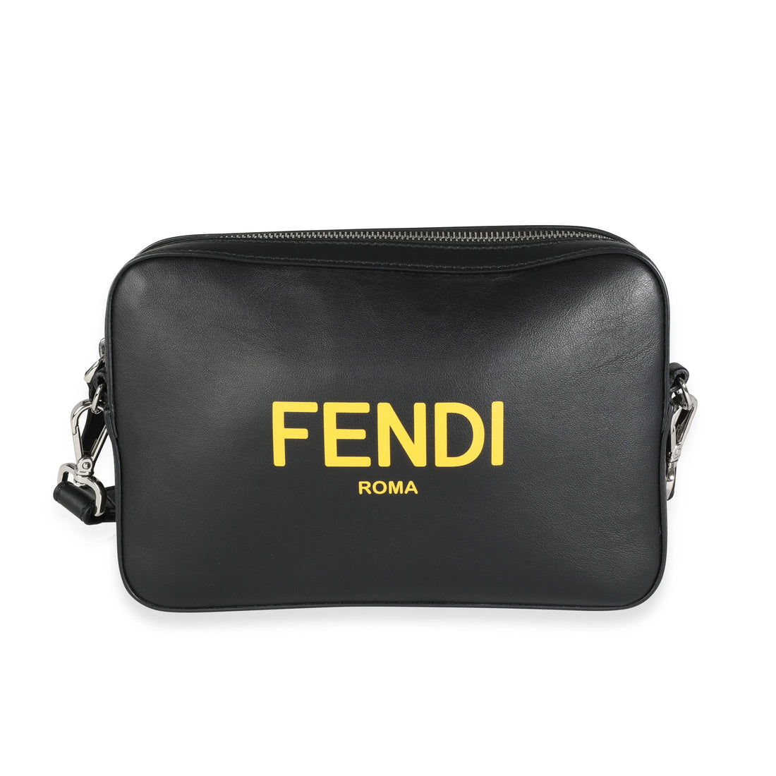 FENDI Black Calfskin & Sunflower Logo Mini Camera Bag