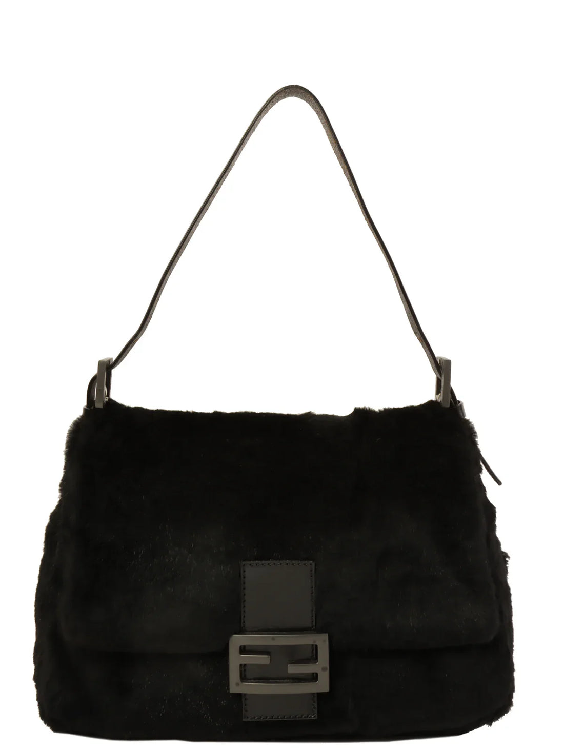 FENDI Fur Mamma Baguette BlackMeasurements: H 21cm W 29cm D 9cm Shoulder Min 43cm Max...