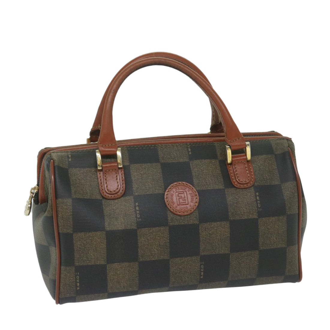 FENDI Pecan Canvas Hand Bag Black Brown Auth 83199BRAND : FENDI Color : Black /...