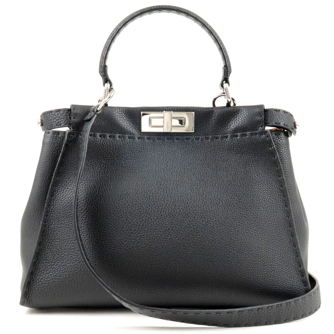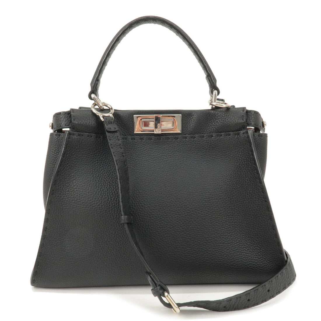 FENDI Selleria Leather Peekaboo Regular 2WAY Bag Black 8BN290