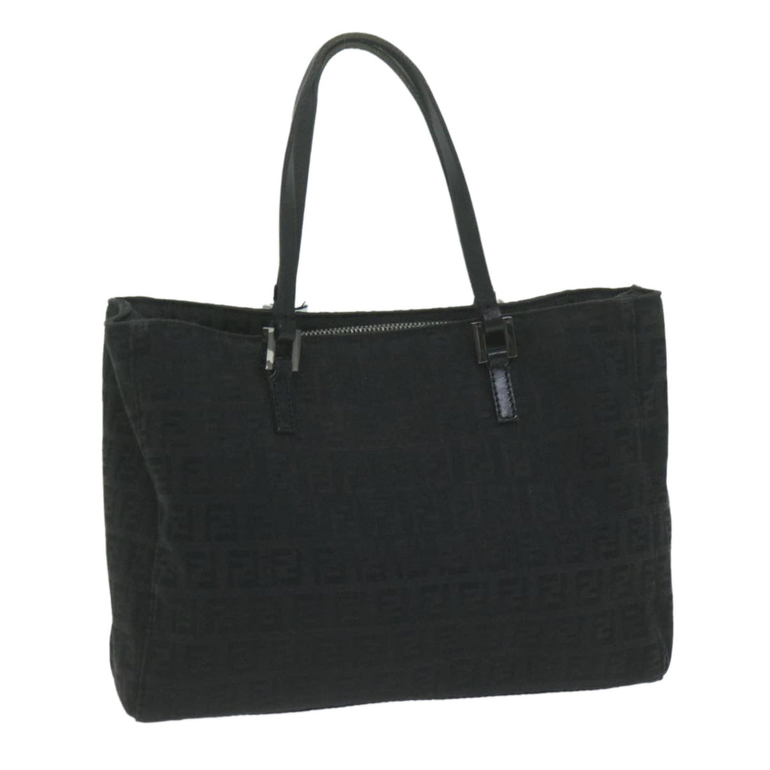 FENDI Zucchino Canvas Hand Bag Black Auth ep4476