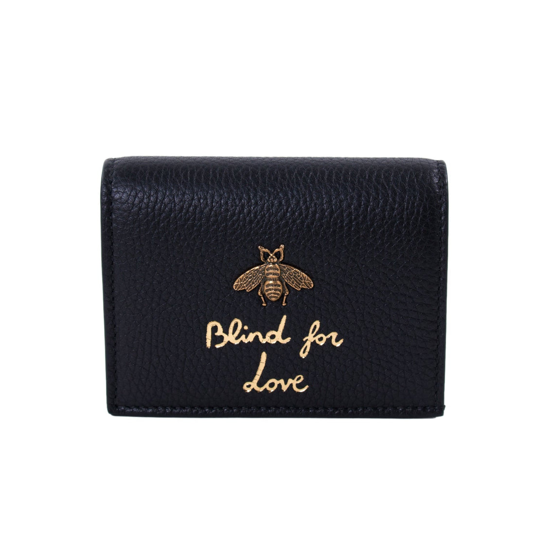 � Description: New�Gucci Animalier Bind For Love Card Case Details: Black Leather / Grass Hardware...