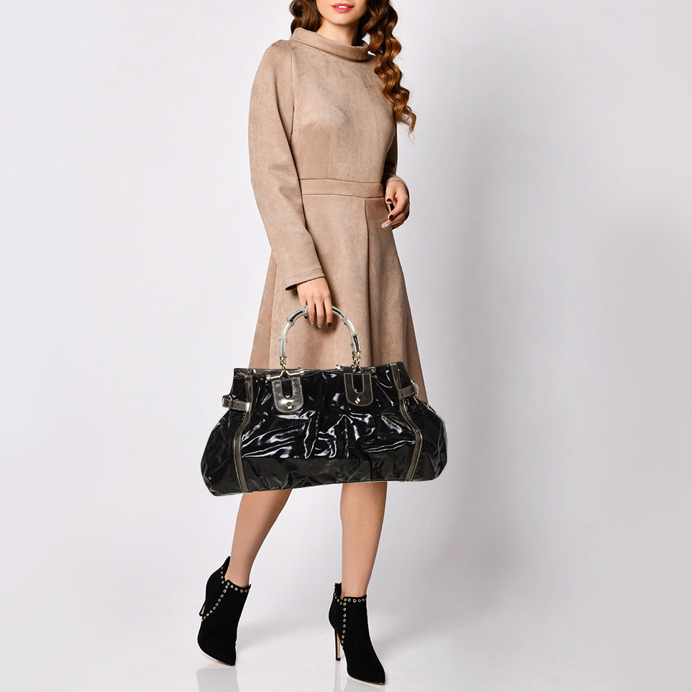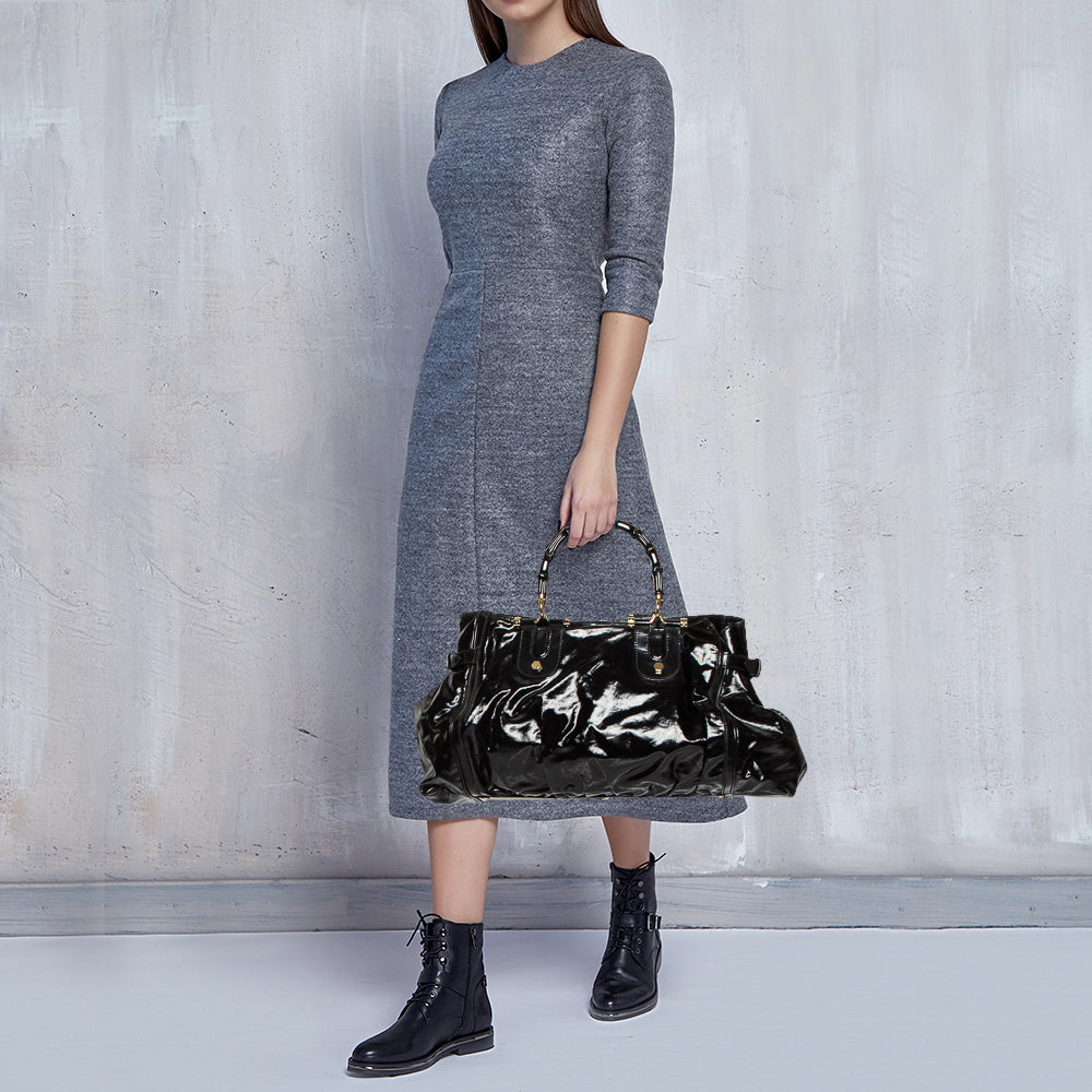 GUCCI Bamboo Vanity Cosmetic Pouch Patent leather Black bs6279