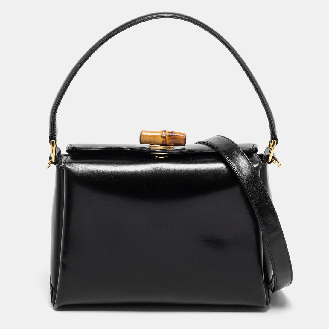 Gucci Black Leather Bamboo Top Handle BagExuding unparalleled elegance and sophistication this bag is made...