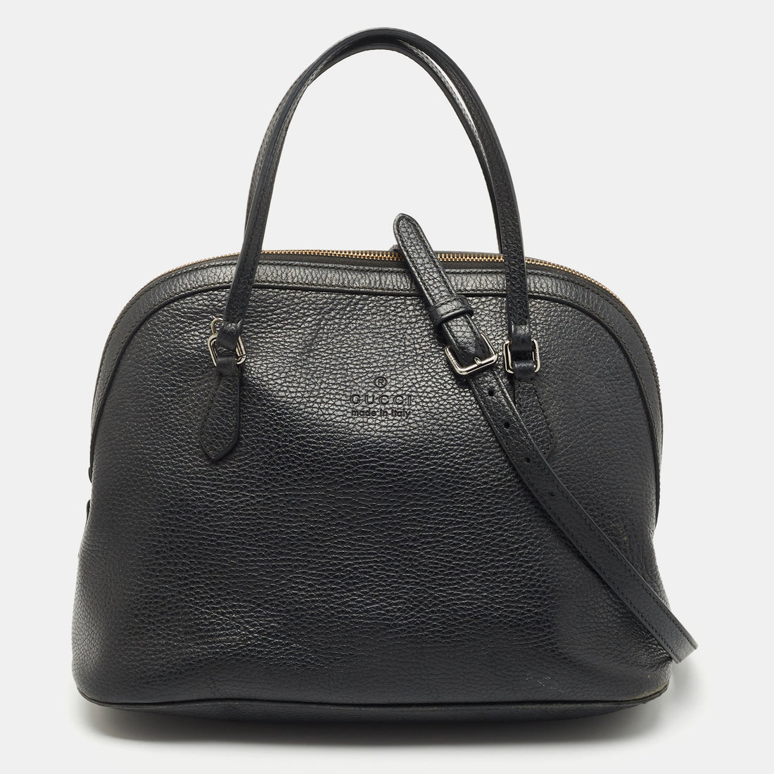 Gucci Black Leather Dome SatchelThis Gucci piece is carefully crafted to offer you a luxurious...