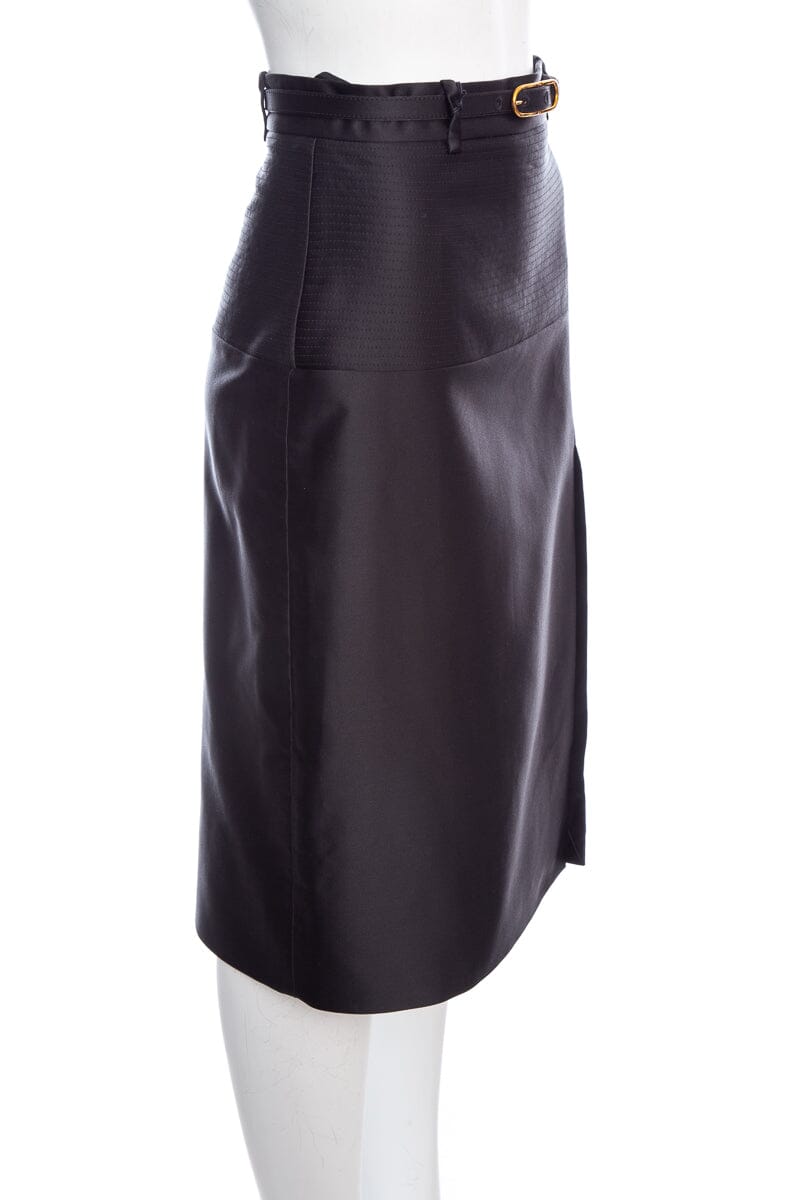 Gucci Black Satin Knee Length Belted Skirt SZ 38 NWT