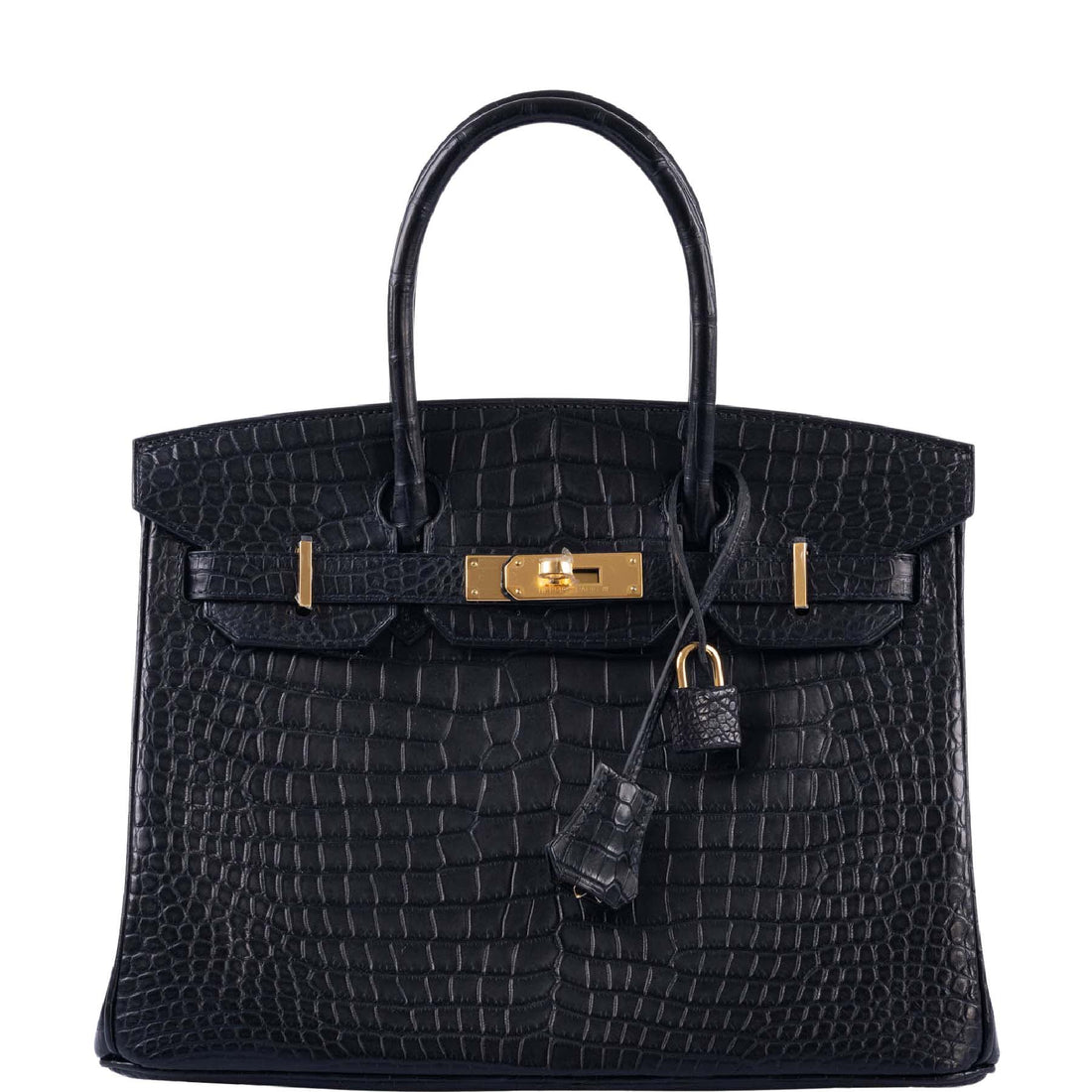 This Hermès Birkin 30 in Shiny Black Porosus Crocodile with Gold Hardware is the epitome...