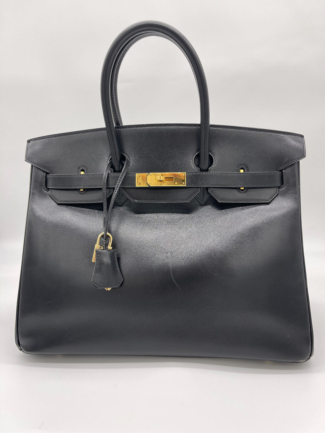 Hermes Birkin 35 Noir Box Leather Gold Hardware
