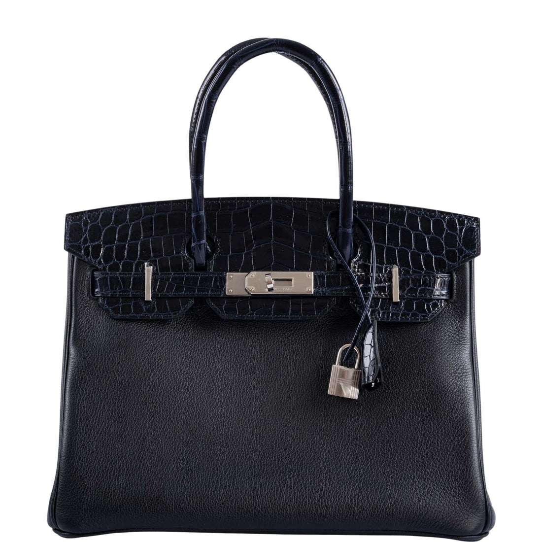 Hermès Touch Birkin 30 Shiny Bleu Marine Nilo Crocodile and Black Novillo Palladium Hardware