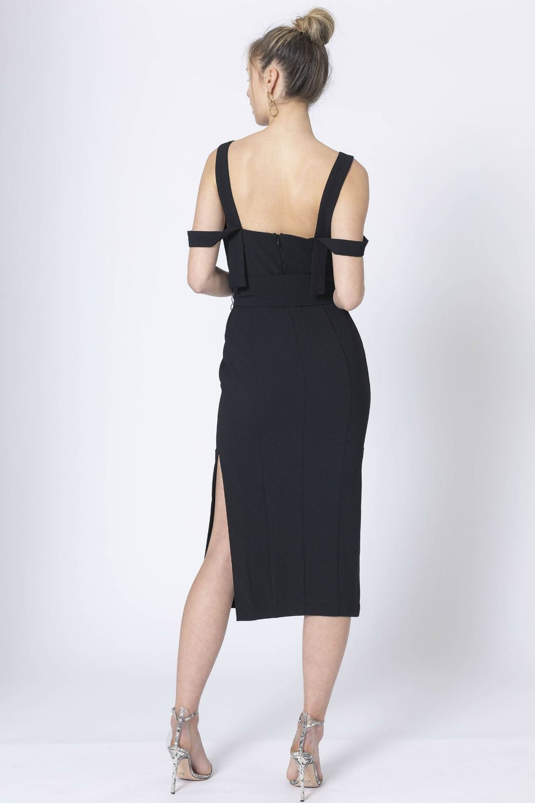 Ingrid Black Stretch Crepe Midi Dress With Cold Shoulder