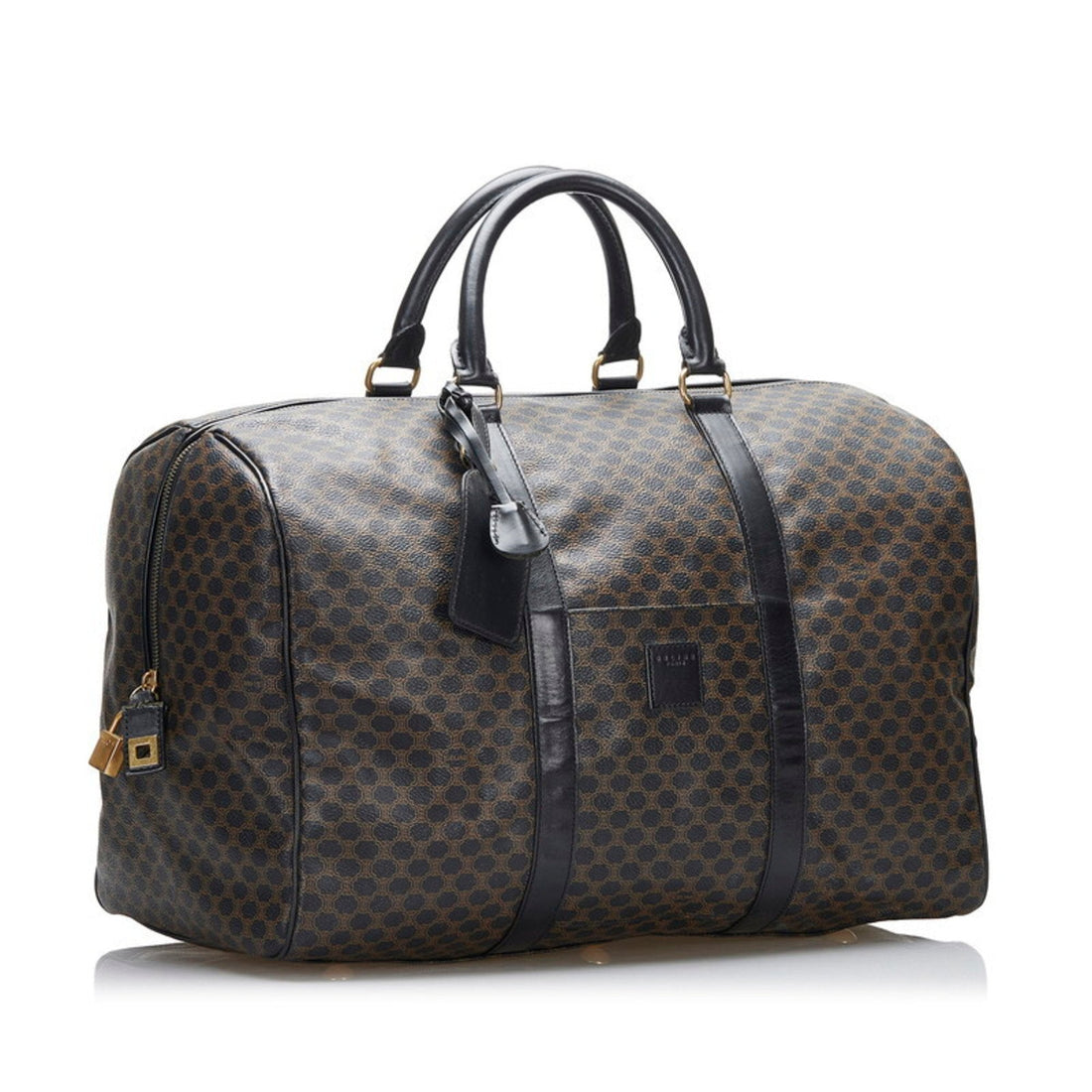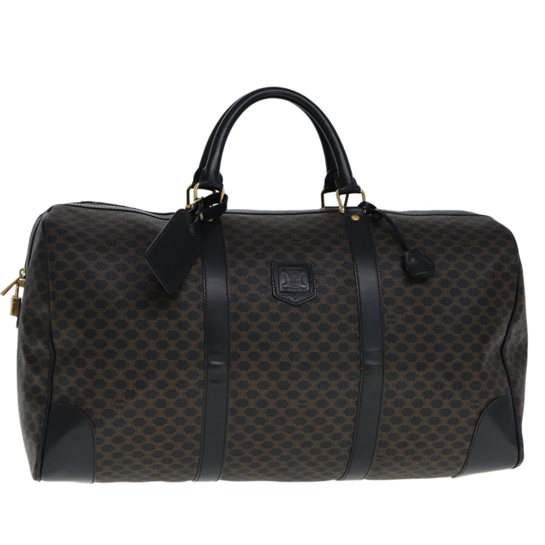 Celine Macadam Boston Bag Brown Black PVC Leather Ladies