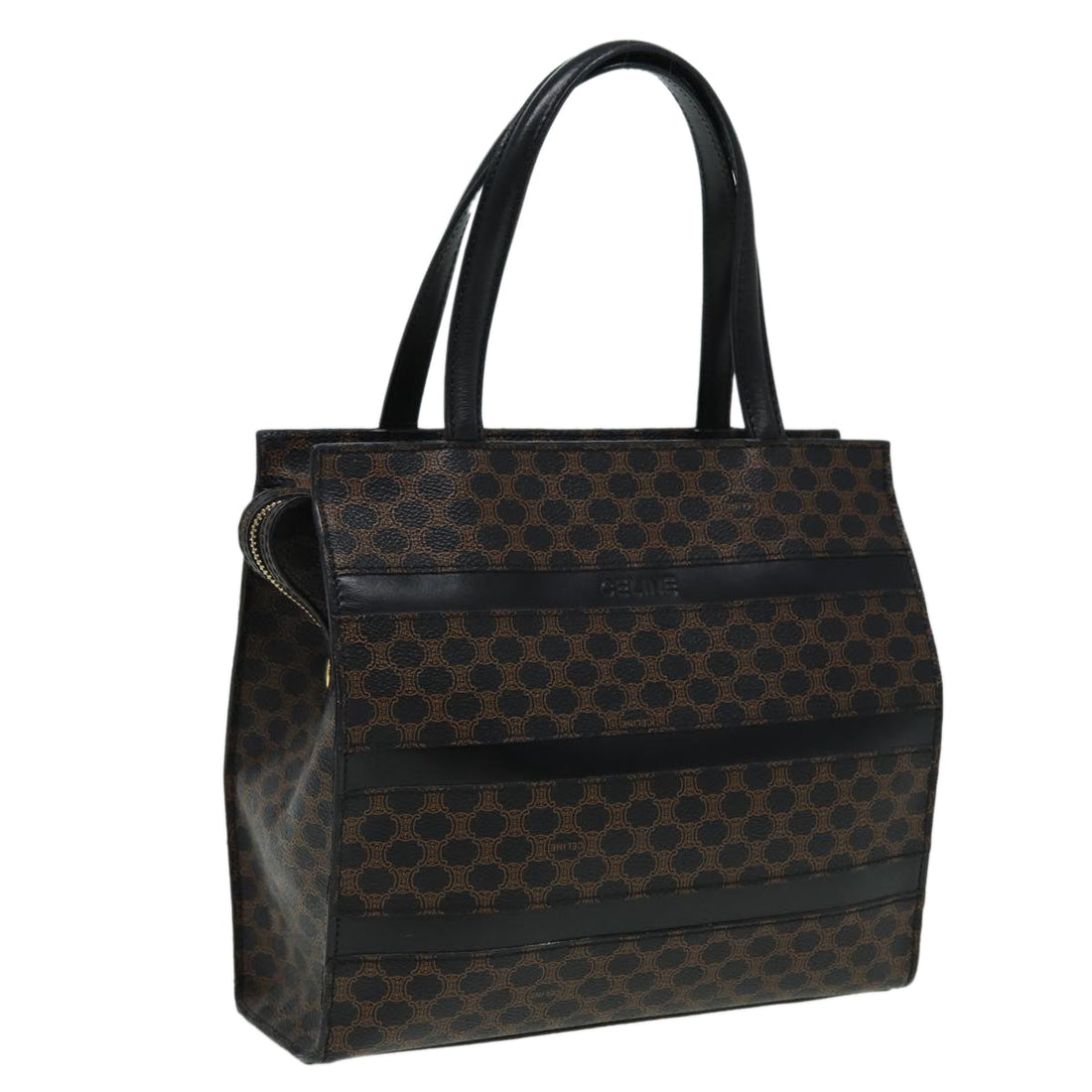CELINE Macadam Canvas Hand Bag PVC Leather 2way Black Auth 81637