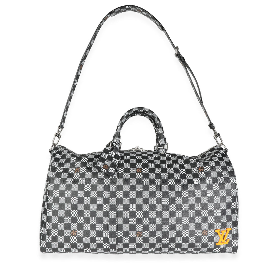 LOUIS VUITTON Black & White Distorted Damier Keepall Bandouliere 50