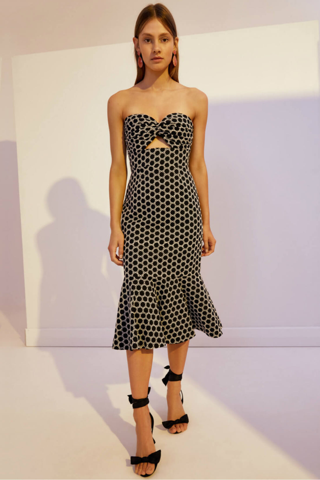 Description The midi dress with a fishtail style hem, features mid weight embroidery anglaise and...