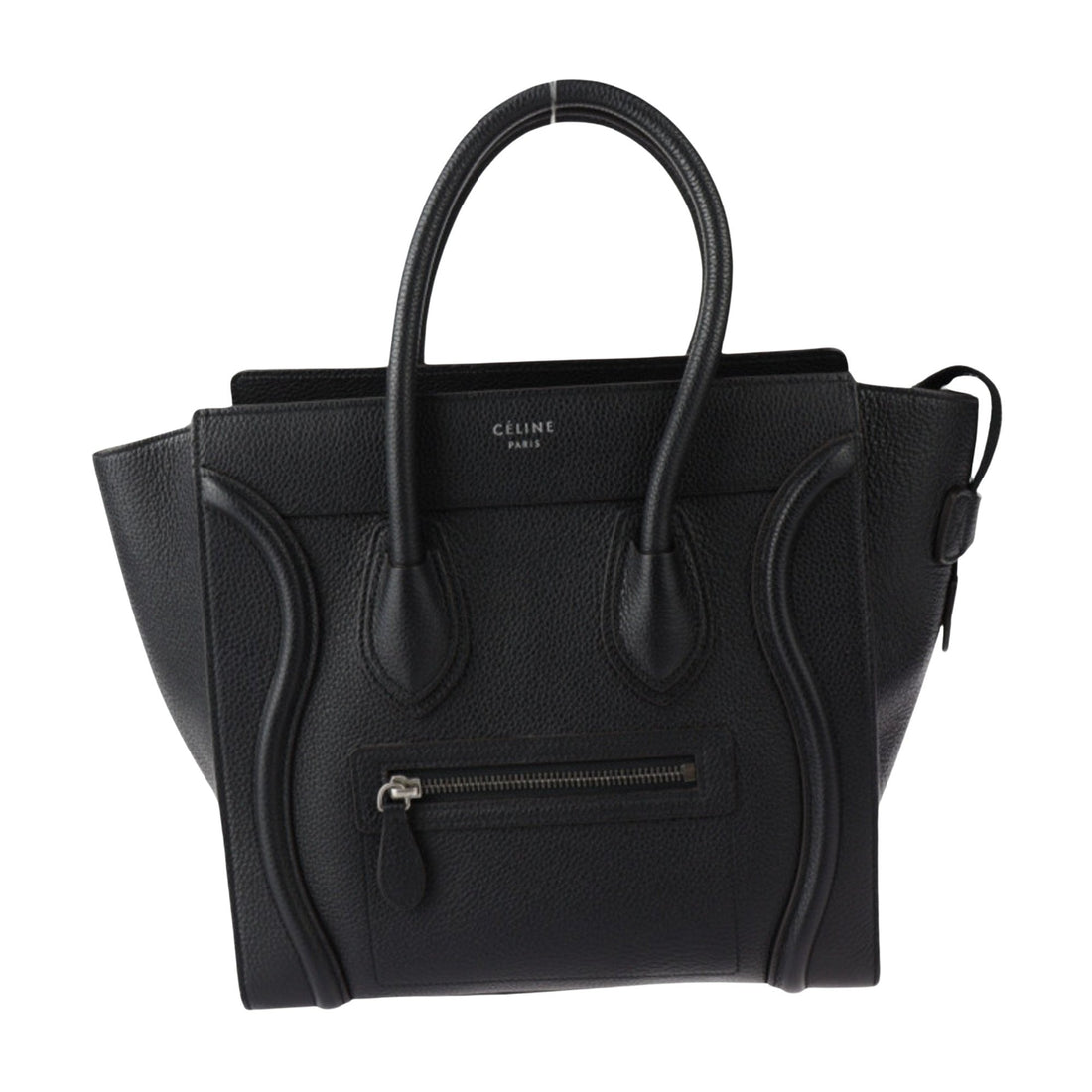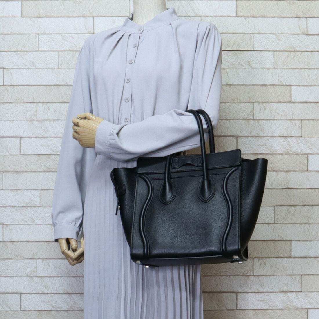 Celine Micro Shopper Luggage Handbag Leather Black Women's