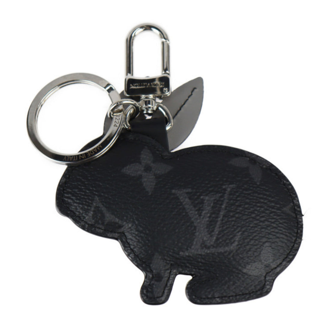 Louis Vuitton Portocre Animal Rabbit Keychain M63224 Monogram Eclipse Leather Black Gray Silver Metal Fittings...
