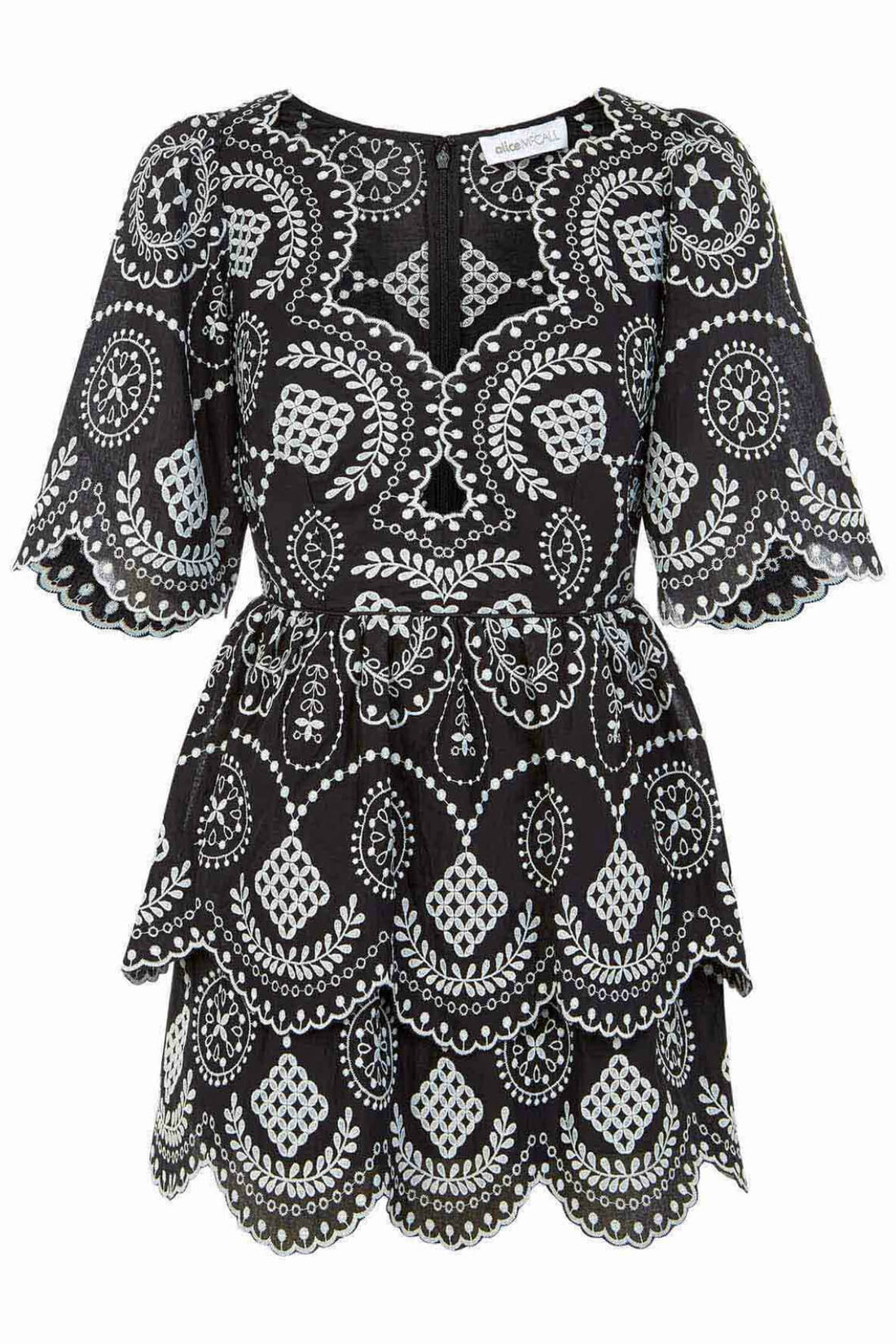 Description This flirty piece features a detailed embroidered pattern with two layers of ruffles in...