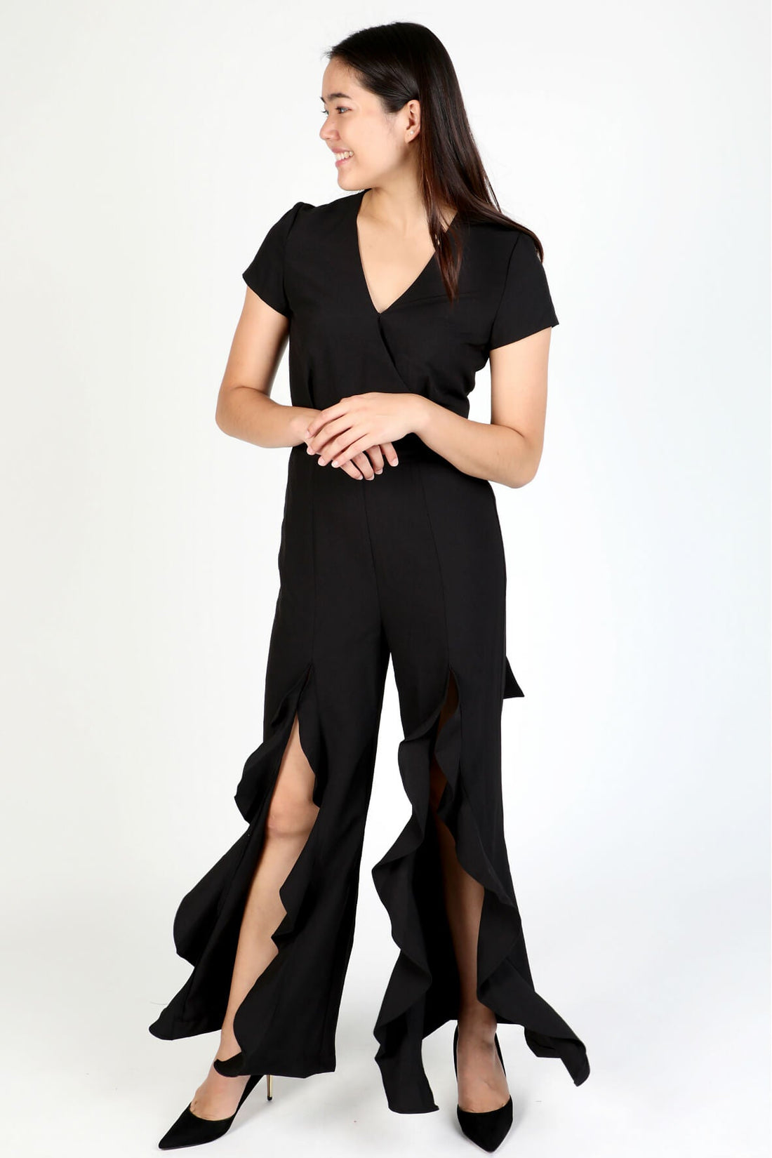 Ruffled Split Front Jumpsuit Black