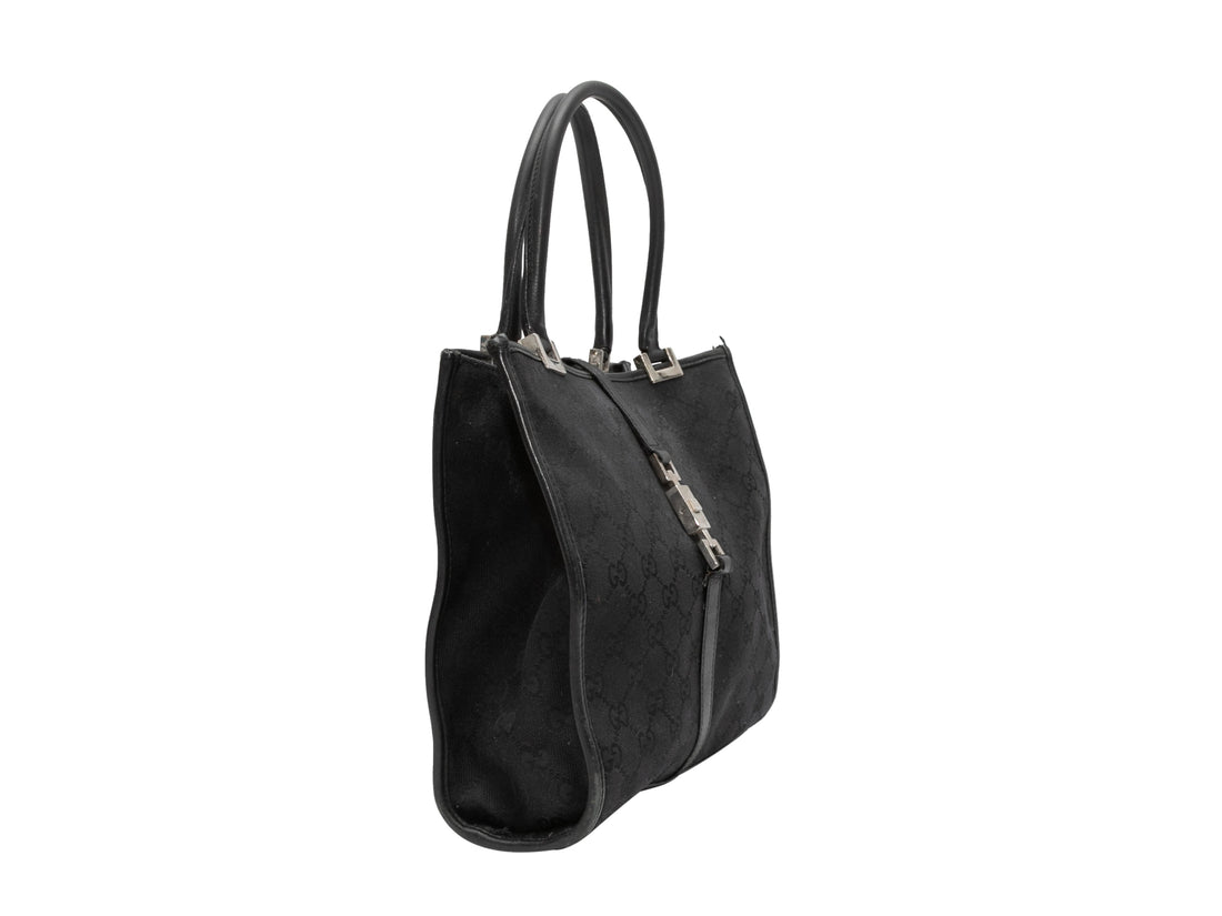 Vintage Black Gucci Monogram Canvas & Leather Tote Bag