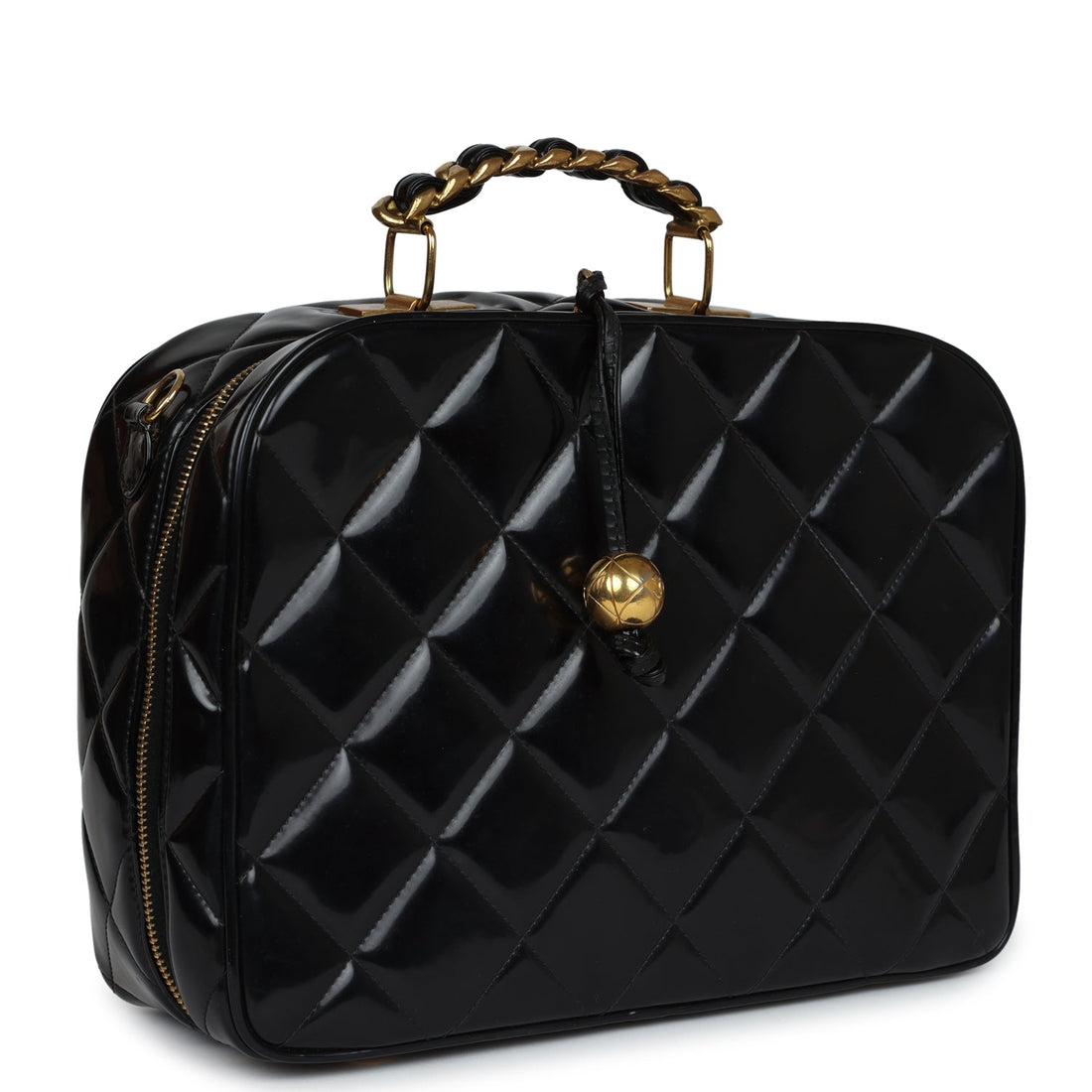 Vintage Chanel Lunchbox Vanity Black Patent Leather Gold Hardware