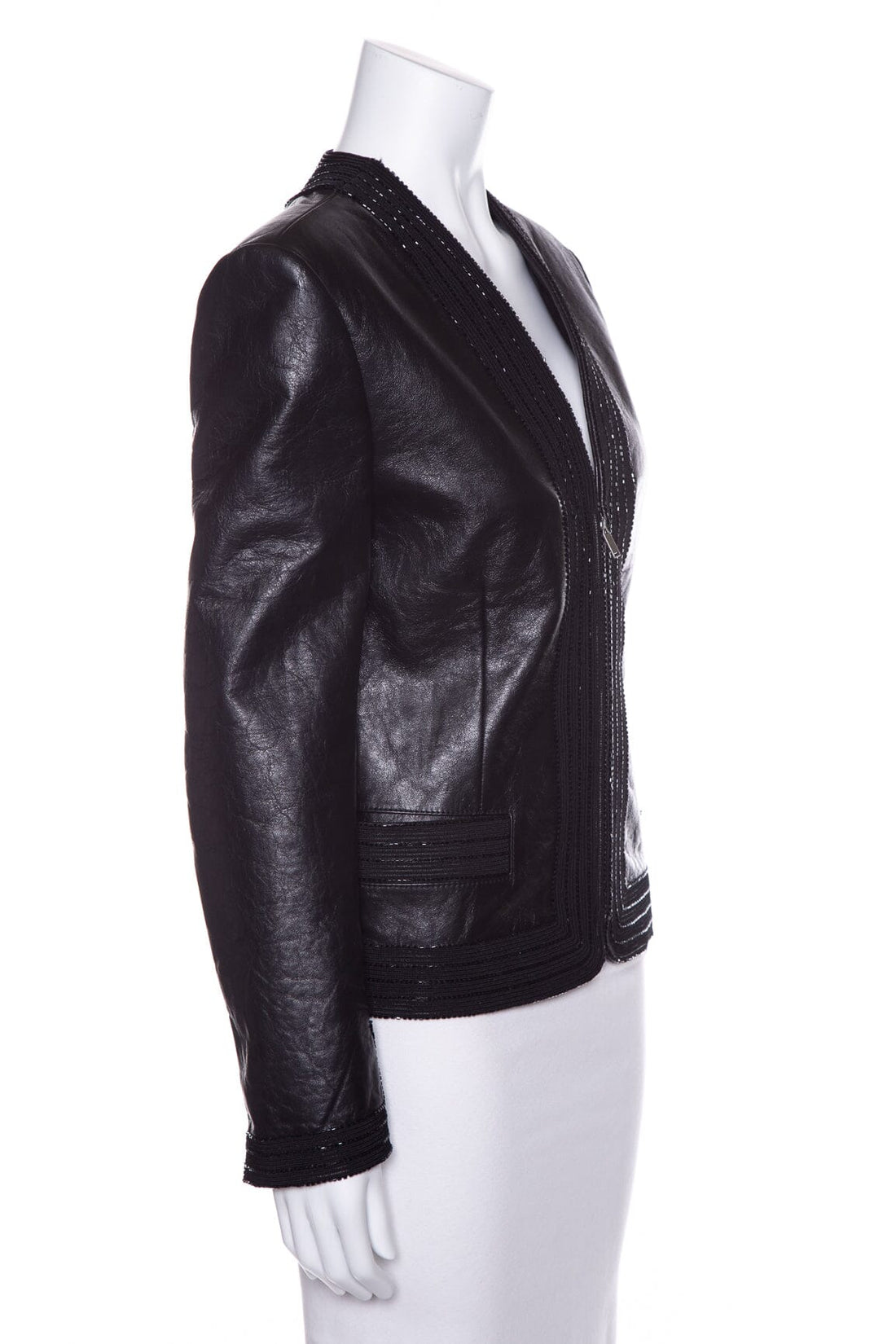 Yves Saint Laurent Black Leather Embellished Blazer SZ S