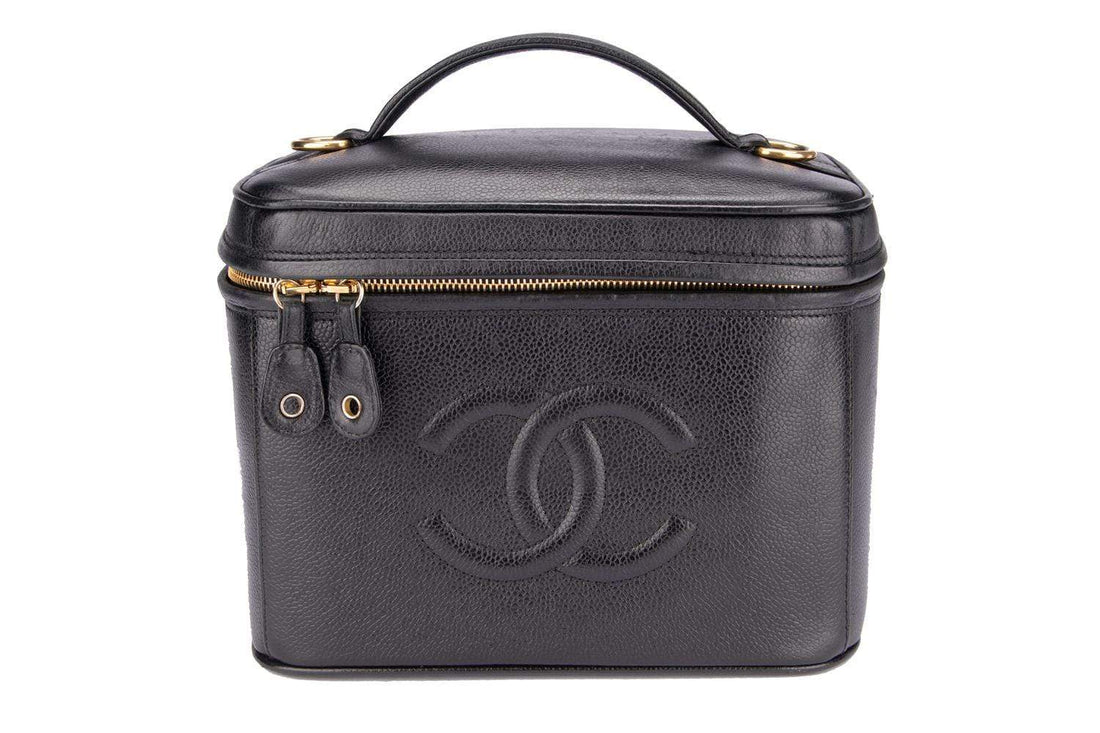 Brand: Chanel Model: Vanity Bag Color: BlackMaterial: Caviar Leather  Chanel Vintage Black Caviar Leather Vanity Bag crafted from black caviar leather,...