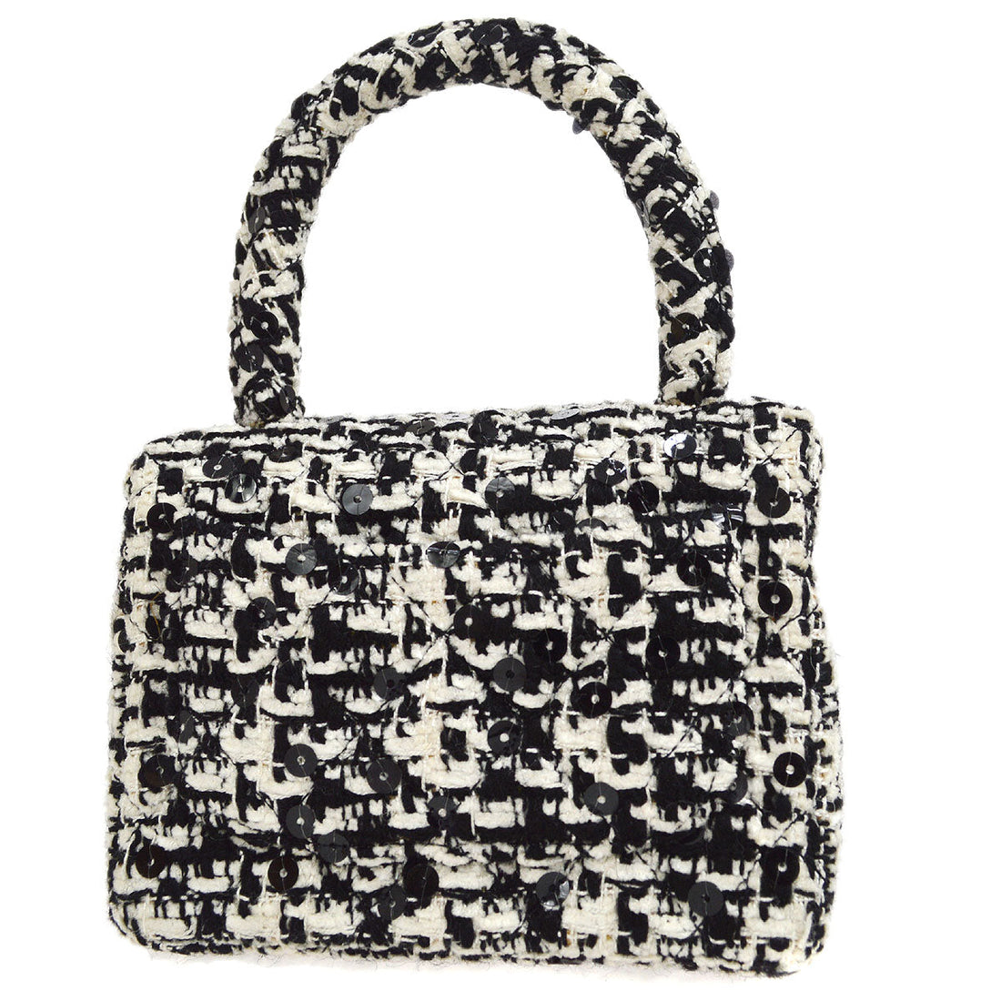 CHANEL Classic Single Flap Handbag Black White Tweed Engraved / Number 2963455 Pocket Outside: Pocket*1...
