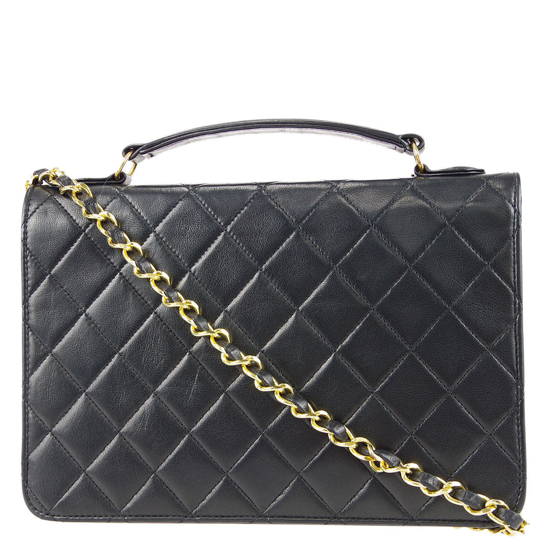 Chanel * 1991-1994 Black Lambskin Mini Vertical Stitch Flap Bag
