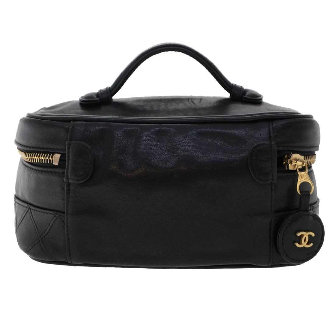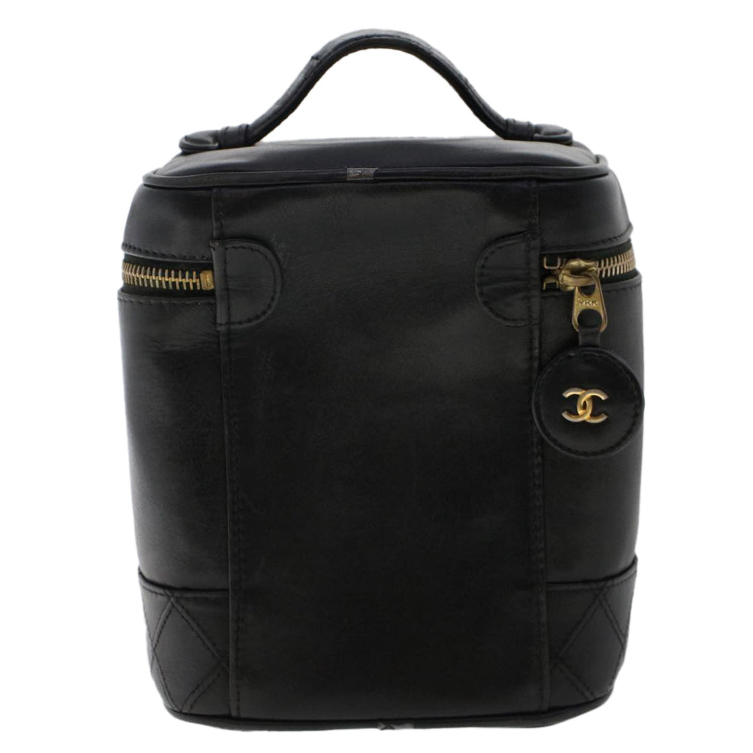 Chanel Bicolole Vanity Cosmetic Pouch Leather Black CC Auth bs7241
