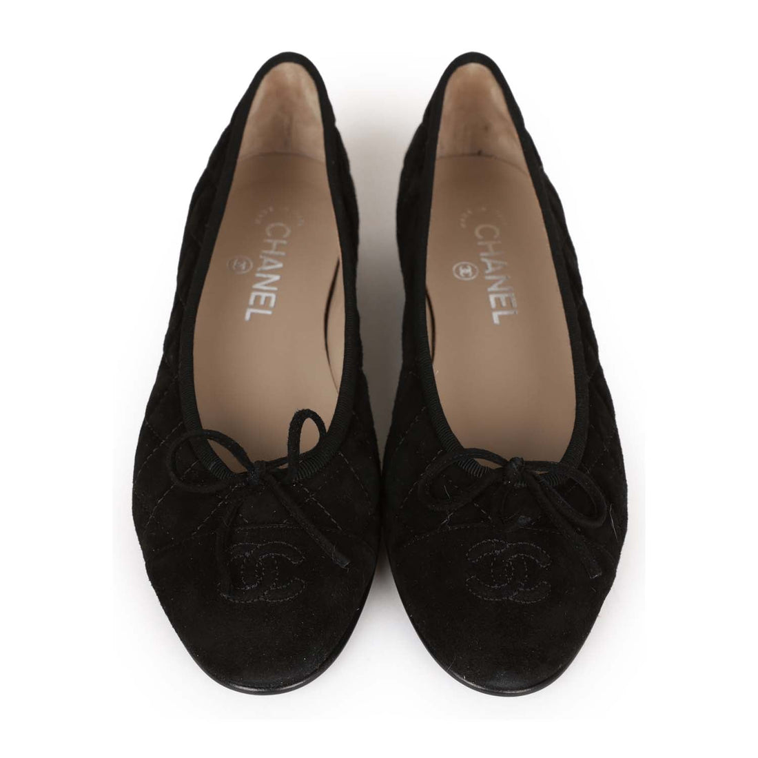 Chanel CC Black Suede Quilted Ballet Flats 39
