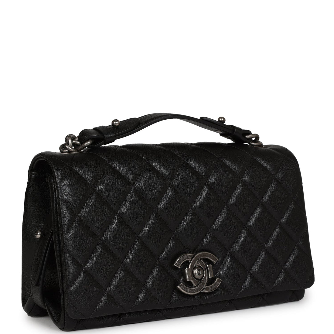 Chanel City Rock Medium Flap Black Goatskin Ruthenium Hardware