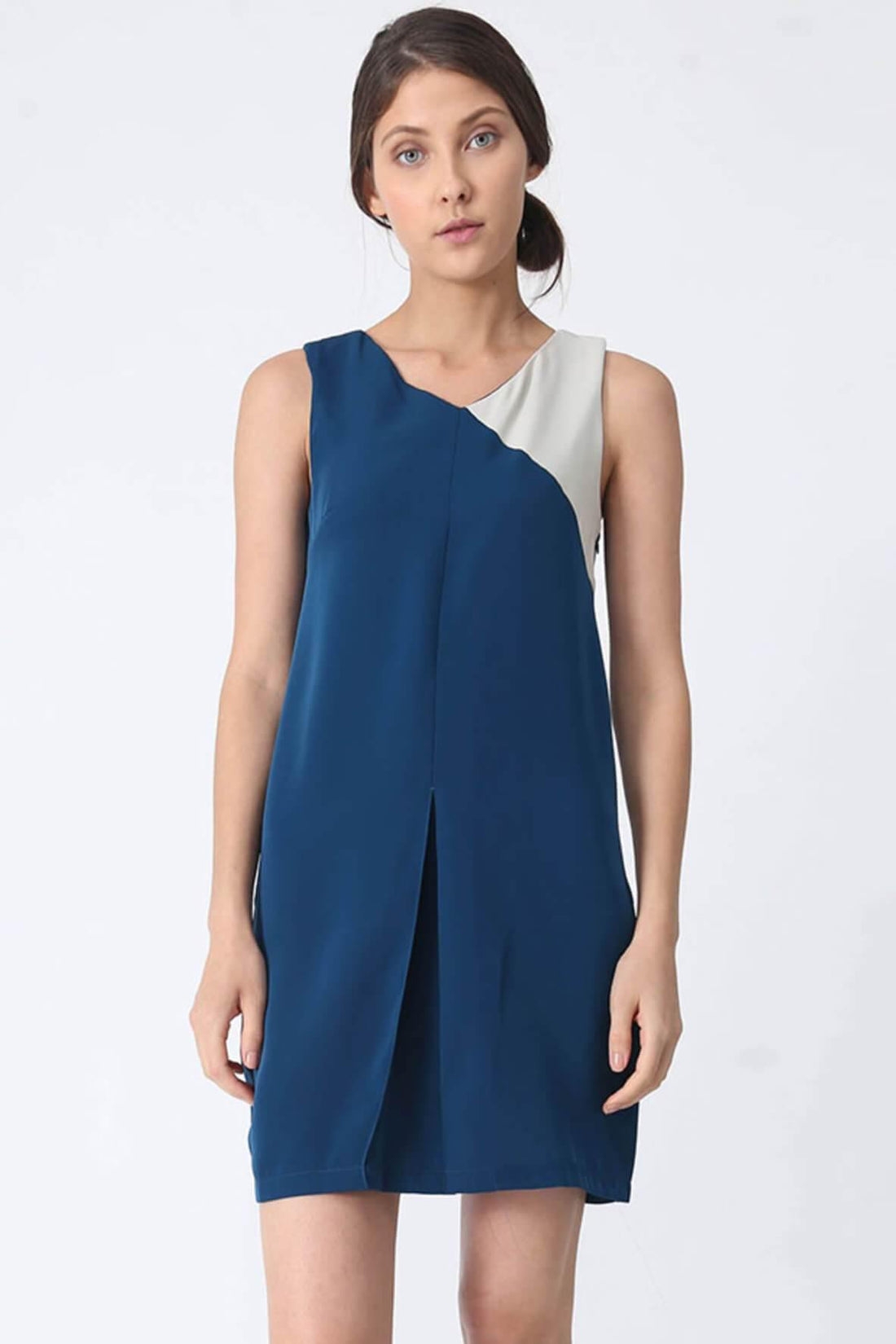 Description The Vea Dress is a shift dress with colourblocking detail. The v-neck is defined...