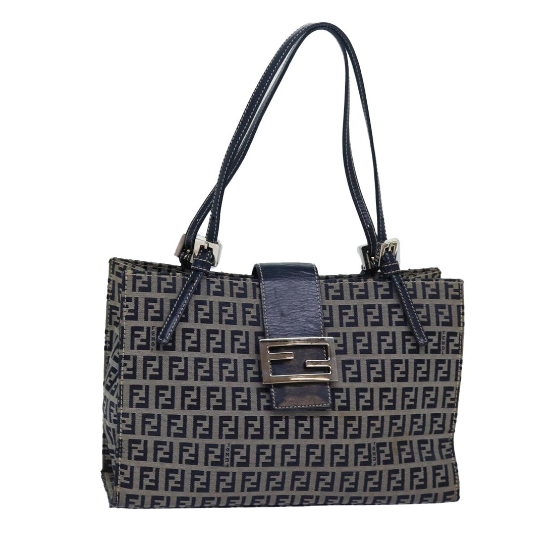 FENDI Zucchino Canvas Tote Bag Navy Auth 75609